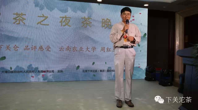普洱茶文化學者楊凱編審結合自己對普洱茶研究成果在茶晚會上發表演講。靈思云途集團重慶公司、茶語網及中國茶葉榜微刊管理合伙人、總經理張陽從新媒體人和年輕普洱茶人的角度與在場嘉賓交流了普洱茶品飲的感受。云南農業大學教授周紅杰還從普洱茶學術研究和專業科技工作者的角度對下關沱茶的安全、工藝、品質、品牌等方面進行了闡述。三位嘉賓還分別對品飲的三款中期茶做了品評。