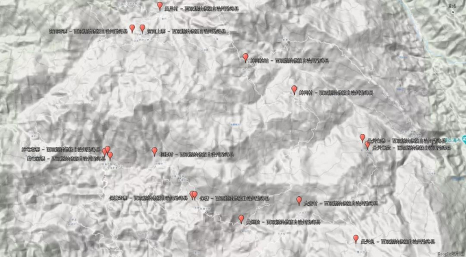 通過上面這張衛(wèi)星地圖,我們可以更全面地看出圍繞著滑竹梁子山脈分布的這些自然村。不難看出,雖然蚌龍村委會(huì)茶葉產(chǎn)量最大,其地理位置上也離滑竹梁子主峰較近,但諸如保塘、蚌岡這些自然村,其實(shí)同樣屬于滑竹梁子山脈的范圍內(nèi)。