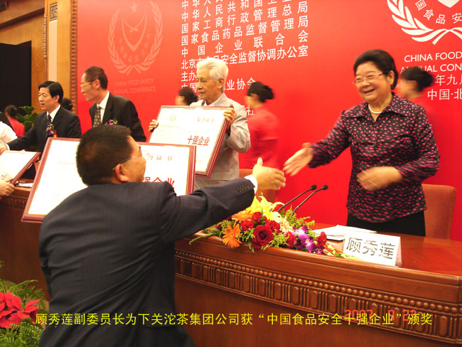 第五屆中國食品安全年會(huì)對一年來在我國食品安全上做出突出成績的十佳企業(yè)和個(gè)人進(jìn)行了表彰,下關(guān)沱茶(集團(tuán))股份有限公司榮登“中國食品安全十強(qiáng)企業(yè)”榜,顧秀蓮副委員長親自為下關(guān)沱茶集團(tuán)頒獎(jiǎng)!公司成為中國茶葉行業(yè)唯一獲得這項(xiàng)殊榮的企業(yè)。公司董事長羅乃?曰瘛爸泄?食品安全十大人物”榮譽(yù)。