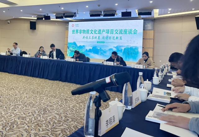 在“共話三茶統籌 同譜非遺新篇――世界非物質文化遺產項目交流座談會”上,非遺傳承項目代表及文旅部門代表相聚一堂,為文化賦能茶業高質量發展建言獻策。
