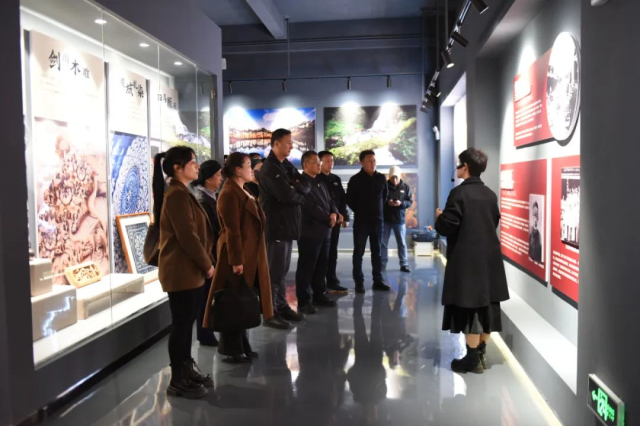下關沱茶館講解員結合館內展陳內容向調研組詳細介紹了公司的品牌歷史、生產技術革新、產品產銷等情況。